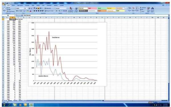 Yearly harvest of mule deer on Elk Ridge. Harvest declined during the 1970’s after mountains were protected and effective predator control eliminated with the ban on 1080. In response to falling mule deer numbers, the season on Elk Ridge was closed from 1980 to 1983. The area reopened in 1984 as a limited-entry bucks-only unit, yet the deer herd has never recovered. Harvest data from DWR Annual Big Game Reports.